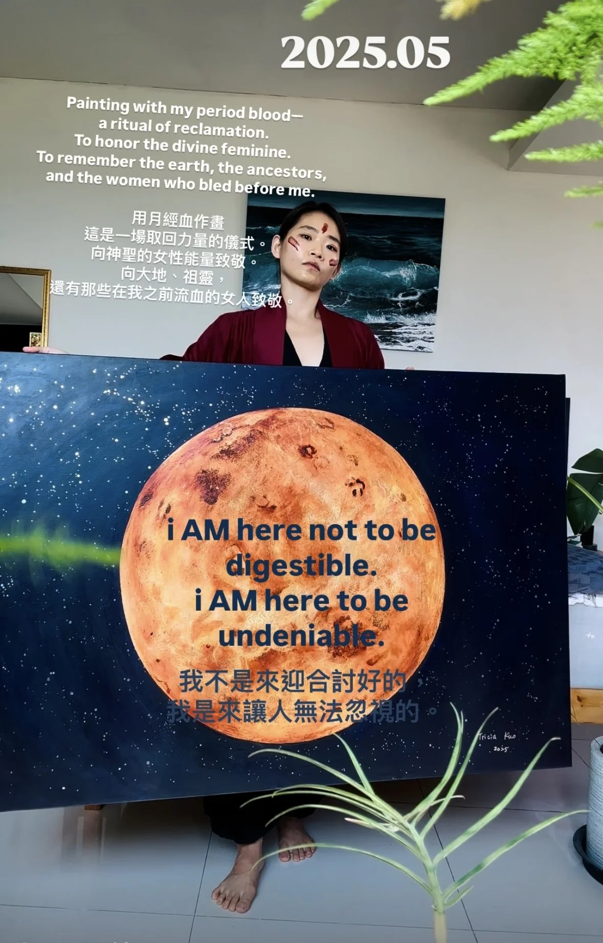 I used to believe that staying invisible was safer. That being “good” and “gentle” was the only way to be accepted. I painted what I was feeling, but rarely did I let people see me—the raw, contradictory, sensual, sacred, and untamed being behind the canvas.