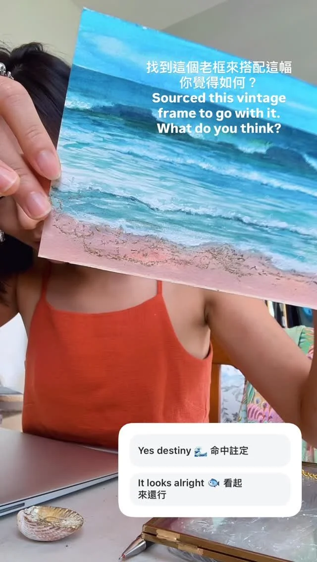 讓我告訴你一件事,我其實一直很害怕畫大幅,這幅30x40cm的原作畫已經被一位藝術家朋友收藏,我只是想利用這個複製品,作為挑戰我的恐懼與練習的過程,還有,我們五月底要搬家,展覽六月開始,我其實也不知道是否有時間可以完成這幅畫,但那也沒關係,過程才是最重要的,這幅畫會以它最真實的樣貌見到你,不管是在過程中的哪個模樣。